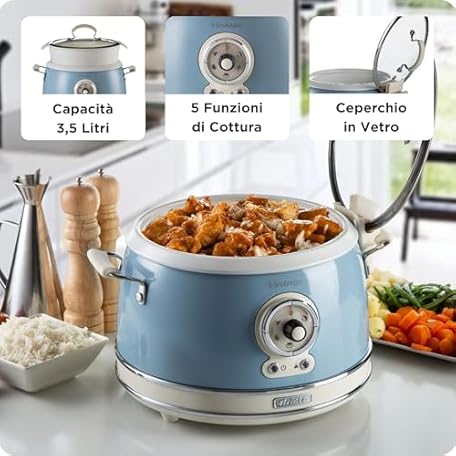 Sản phẩm Ariete 2904 Rice Cooker, Rice Cooker, Slow Cooker, Steamer, Vintage Line, 3.5L, Non-Stick Ceramic Coating, 650W, Pastel Blue, Sky Blue đang được bán với giá ưu đãi là $95.1352 tại nước Đức.
