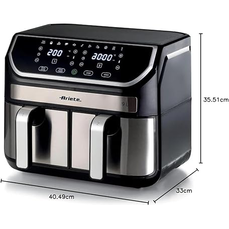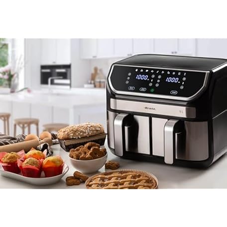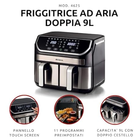 Thông tin sản phẩm Ariete 4625 Air Fryer 9L - 11 Preset Programmes, Digital Display, Dishwasher Safe Dual Basket Air Fryer with Rapid Air Technology, Adjustable Temperature of 80°C - 200°C