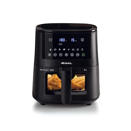 Ariete 4633 4L Hot Air Fryer, 1400 W, 4L Capacity, 9 Programmes, Shake and Grill Function, Temperature up to 200 °C, Black