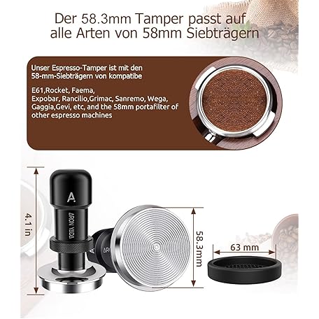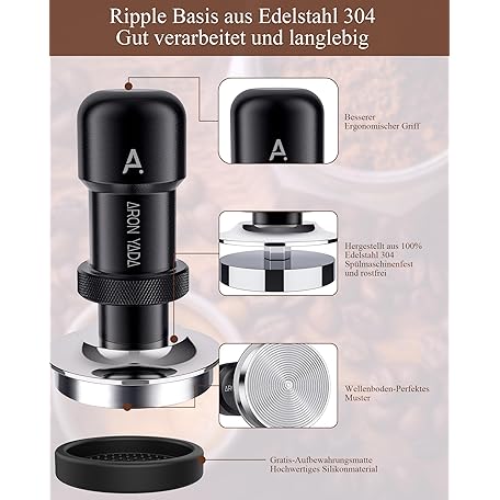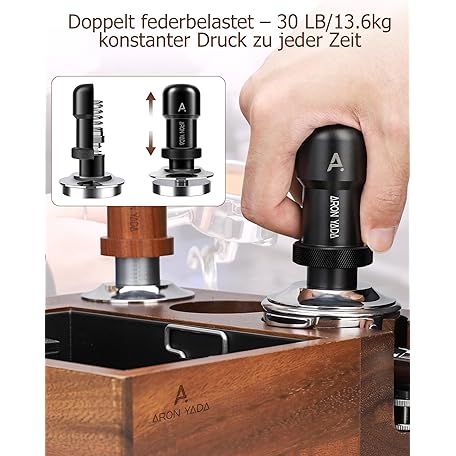 Sản phẩm AronYada Coffee Tamper 58.3 mm with Base Ripple, Double Spring Espresso Tamper 58.3 with 30 lbs Contact Pressure, 304 Stainless Steel Base Coffee Tamper for Portafilter 58 mm đang được bán với giá ưu đãi là $27.3154 tại nước Đức.
