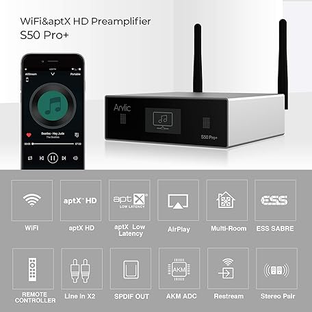 Thông tin sản phẩm Arylic S50 Pro+ WiFi & Bluetooth 5.0 Audio Receiver, aptX HD Preamp with ESS Sabre Dac AKM ADC Multiroom/Multizone, Wireless Audio Receiver with Airplay, Spotify, Internet Radio
