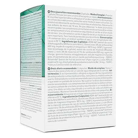 Thông tin sản phẩm Ashwagandha 600 mg, Rhodiola Rosea, Magnesium, Vitamin B6 and Vitamin B5 - Only 2 Capsules Daily - 120 Ashwagandha Capsules for 60 Days - 10% Witanolide - AdrenaLux Sensilab