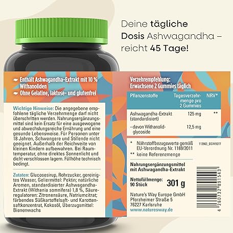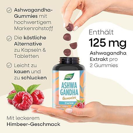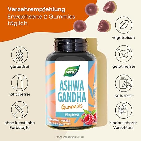 Thương hiệu NATURE'S WAY là cái tên nổi tiếng được rất nhiều khách hàng trên thế giới chọn lựa. Với kiểu dáng đẹp mắt, sang trọng, sản phẩm Ashwagandha Gummy Bears High Dose 125 mg Ashwaganda Extract I Raspberry Flavour I 45 Days Supply I Dietary Supplement I 90 Vitamin Gummies là sự lựa chọn hoàn hảo nếu bạn đang tìm mua một món cho riêng mình.