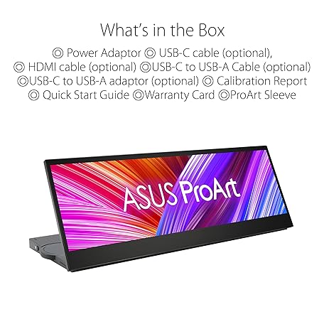 Thông tin sản phẩm ASUS ProArt PA147CDV - 14 Inch Creative Touch Tool - Full HD 1920 x 550, Calman, 100% sRGB, 10-Point Touch, Adobe Software Compatible - IPS, 32:9, Anti-Glare, Type-C USB, HDMI