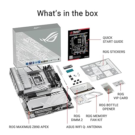 Thông tin sản phẩm ASUS ROG Maximus Z890 APEX Gaming Motherboard Socket Intel LGA 1851 (ATX, Advanced AI, DDR5, WiFi 7, 3X PCIe 5.0 M.2, Q-Release, 2X Thunderbolt 4, DIMM Flex)