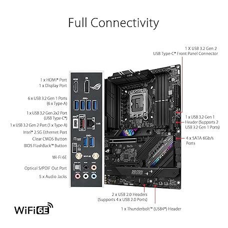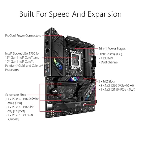 Thông tin sản phẩm ASUS ROG STRIX B760-F Gaming WiFi Motherboard Socket Intel LGA 1700 (Intel B760, ATX, DDR5 Memory, PCIe 5.0, WiFi 6E, 3x PCIe 4.0 M.2, Aura Sync)