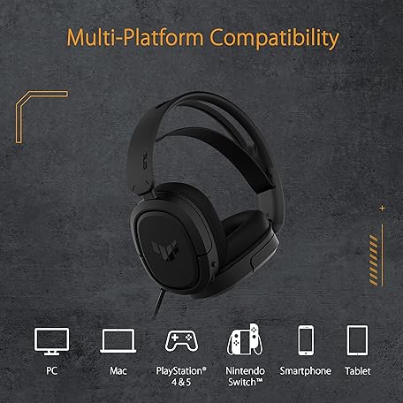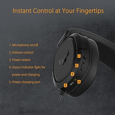 Thông tin sản phẩm ASUS TUF GAMING H1 Wireless Headset, 7.1 Surround Sound, Lightweight, Comfortable Design, Compatible with PCs, PlayStation 5, Nintendo Switch and XBOX, Black