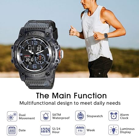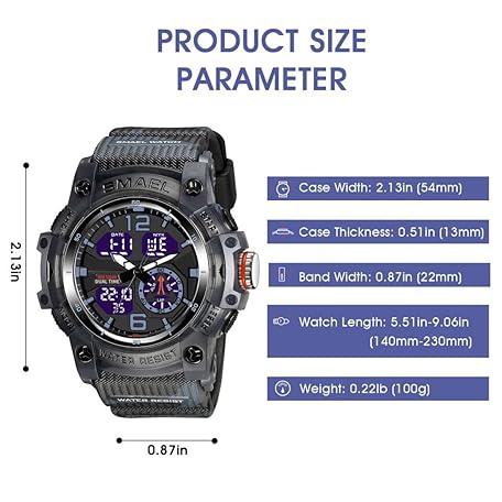 Thông tin sản phẩm aswan watch Men's Digital Watch with Alarm Clock, Stopwatch, Light, Date Sports Watch with Silicone Strap
