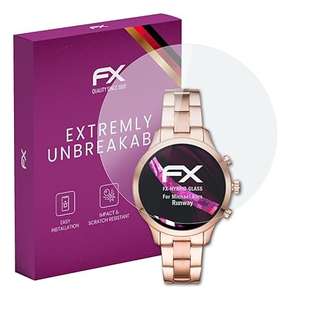 atFoliX Glasfolie kompatibel mit Michael Kors Runway Panzerfolie, 9H Hybrid-Glass FX Schutzpanzer Folie