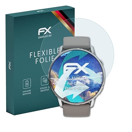 atFoliX Schutzfolie kompatibel mit Garmin Venu 4 45 mm Folie, ultraklare und flexible FX Displayschutzfolie (3X)