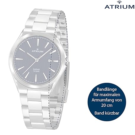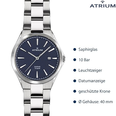 Thông tin sản phẩm Atrium A33-35 Men's Watch Stainless Steel Analogue Quartz 10 Bar Sapphire Glass with Stainless Steel Strap and Date Display Silver Blue, silver, Bracelet