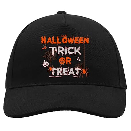 Atspauda Halloween Trick Or Treat Spooky Spinnennetz-Grafik, bequem, Unisex, gebürstete Baumwolle, Baseball-Trucker-Kappe mit Schnalle, Schwarz, Schwarz , Einheitsgröße