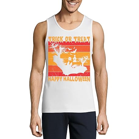 Atspauda Trick Or Treat Happy Halloween Flying Bat Graphic Herren Baumwolle Tank Top T-Shirt Weiß, weiß, S