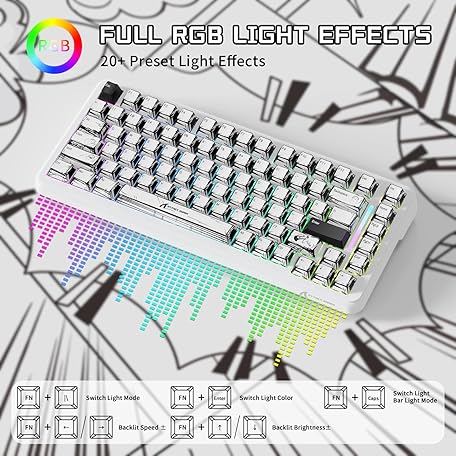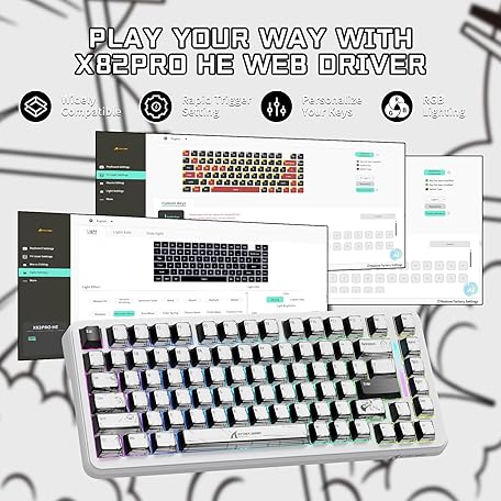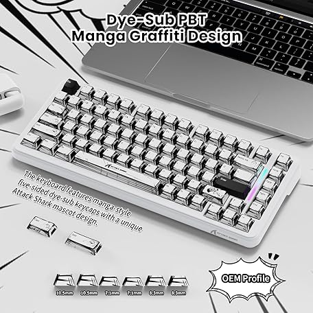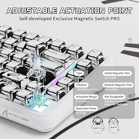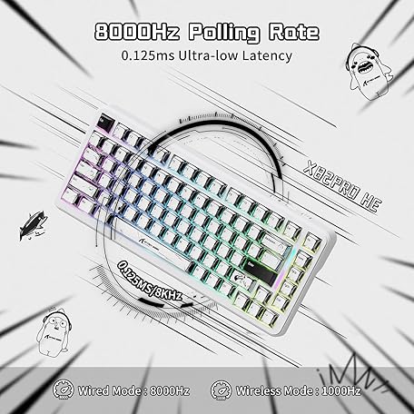 Thông tin sản phẩm ATTACK SHARK X82PRO HE 75% Kabellose Rapid Trigger Gaming Tastatur, Hall Effekt Magnetschalter Tastatur mit 0,01mm RT-einstellbarer Betätigung, 8-kHz-Abfragerate, Hot-Swap, RGB, für PC-Gamer (Comic)