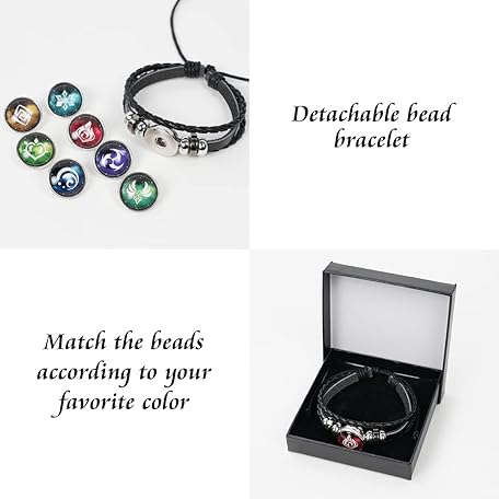 Thông tin sản phẩm Aucuu Genshin Impact Unisex Bracelet, Peripheral Game Element Badge, Adjustable Luminous Game Fan Cosplay Gift (1 Bracelet + 7 Replacement Beads)