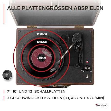 Sản phẩm Audizio RP114W Record Player with Speaker, Vinyl Player, Record Player with Adapter for 3-Speed 33, 45, 78 rpm, Record Player, AUX and RCA/Cinch, Retro Record Player, Wood đang được bán với giá ưu đãi là $57.334 tại nước Đức.