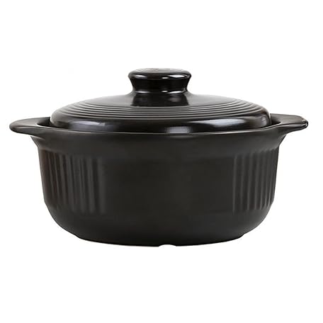 Auflaufschale Keramik Auflauftopf, runder Auflaufkochtopf mit Deckel und Griff, Eintopfkochtopf Slow Cooker Eintopfpfanne für Küchenkochgeschirr, Black-3,2L (schwarz 1,3 l)