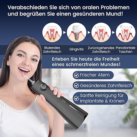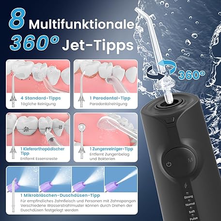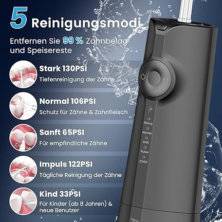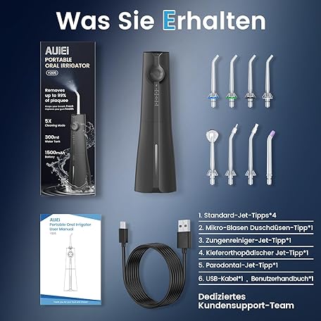 Sản phẩm AUIEI Wireless Oral Irrigator, Electric Tooth Cleaner, Portable Water Flosser, 5 Modes & 8 Nozzles, 300 ml Dental Irrigator, Oral Irrigator, Test Winner for Oral Care & Cleaning, Travel Home (Black) đang được bán với giá ưu đãi là $23.7402 tại nước Đức.
