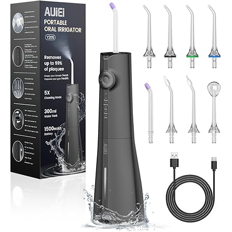 Thông tin sản phẩm AUIEI Wireless Oral Irrigator, Electric Tooth Cleaner, Portable Water Flosser, 5 Modes & 8 Nozzles, 300 ml Dental Irrigator, Oral Irrigator, Test Winner for Oral Care & Cleaning, Travel Home (Black)