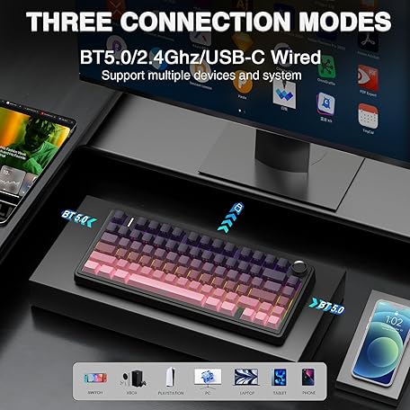 Sản phẩm AULA F75 PRO Mechanical Keyboard Gaming, 2.4 GHz/Type-C/BT5.0 Mechanical Keyboard, Side Engraved, Five Layer Padding Structure, QWERTY, Hot-Swap Wireless Gaming Keyboard 75 Percent (Pink) đang được bán với giá ưu đãi là $112.9022 tại nước Đức.