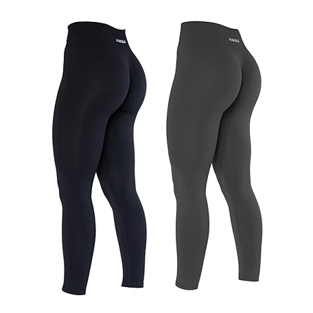 AUROLA Dream Collection Workout-Leggings für Damen, hohe Taille, nahtlos, Scrunch, athletisch, Laufen, Fitnessstudio, Fitness, Set (Schwarz+Asphalt Grau), M