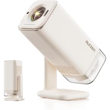 Aurzen Boom Air Mini Beamer mit Google TV&NetfIix, 4K Unterstützt, Aufladbar via USB-C, Smart Projektor - Dolby Audio, Beamer Outdoor mit WiFi & Bluetooth, TOF Autofokus, Drehbarer Ständer, Cremeweiß