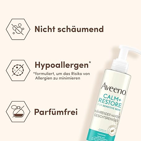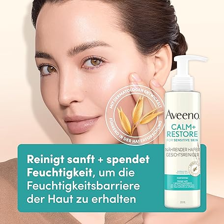 Sản phẩm Aveeno CALM+RESTORE nährender Hafer Gesichtsreiniger (200 ml), parfümfreie & sanfte Gesichtsreinigung für empfindliche Haut mit präbiotischem Hafer & beruhigendem Mutterkraut đang được bán với giá ưu đãi là $12.6658 tại nước Đức.