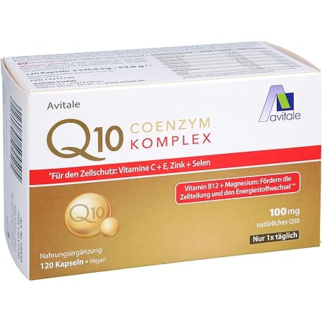 Sản phẩm Avitale Coenzyme Q10 Complex Capsules with 100 mg, Pure Vegetable Coenzyme Q10, Vitamin C, 120 Capsules đang được bán với giá ưu đãi là $31.5773 tại nước Đức.