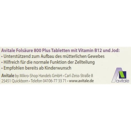 Sản phẩm Avitale Folic Acid with Vitamin B12 and Iodine 800 Plus, 120 Tablets Klicksp, Single Pack (1 x 7,8g) đang được bán với giá ưu đãi là $8.5238 tại nước Đức.