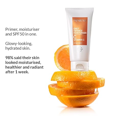 Thông tin sản phẩm Avon Anew Daily Defence Vitamin C 50ml SPF 50 Revitalises the Look of Dull Skin with 24-Hour Moisturising, Non Greasy and Oil Free, Cruelty Free