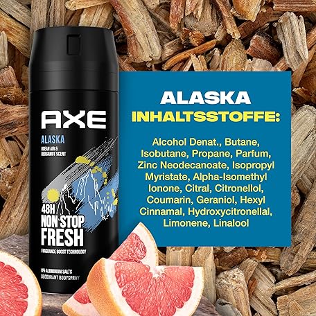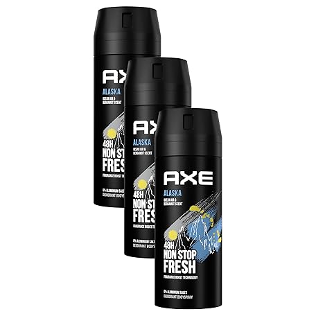 Sản phẩm Axe Bodyspray Alaska deodorant without aluminium, fights odour-causing bacteria and unpleasant odours, 150 ml, pack of 3 đang được bán với giá ưu đãi là $12.9165 tại nước Đức.