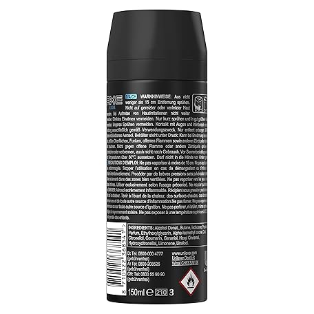 Thông tin sản phẩm Axe Bodyspray Alaska deodorant without aluminium, fights odour-causing bacteria and unpleasant odours, 150 ml, pack of 3