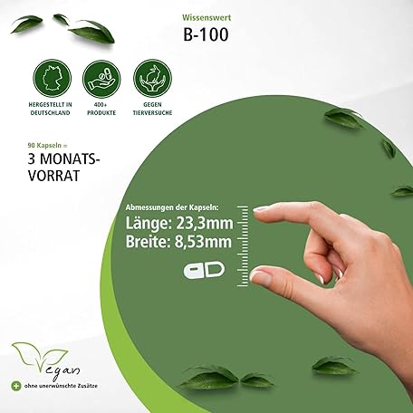 Sản phẩm B-100 – Vegan Vitamin B Complex, B1 (Thiamin), B2 (Riboflavin), B3 (Niacin) B5 (Pantothenic Acid), VB6 (Pyridoxine) B7 (Biotin), B9 (Folic Acid), B12 (Cobal Amin) – Immune System and Nervous System, Metabolism đang được bán với giá ưu đãi là $44.8426 tại nước Đức.