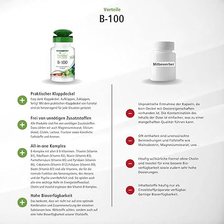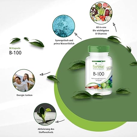 Thương hiệu fairvital là cái tên nổi tiếng được rất nhiều khách hàng trên thế giới chọn lựa. Với kiểu dáng đẹp mắt, sang trọng, sản phẩm B-100 – Vegan Vitamin B Complex, B1 (Thiamin), B2 (Riboflavin), B3 (Niacin) B5 (Pantothenic Acid), VB6 (Pyridoxine) B7 (Biotin), B9 (Folic Acid), B12 (Cobal Amin) – Immune System and Nervous System, Metabolism là sự lựa chọn hoàn hảo nếu bạn đang tìm mua một món cho riêng mình.