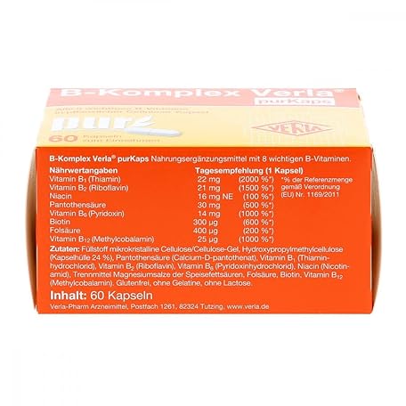 Sản phẩm B-Complex Verla purKaps, Pack of 60 đang được bán với giá ưu đãi là $29.8987 tại nước Đức.