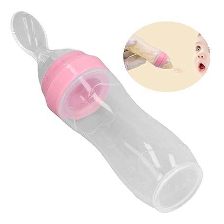 Thông tin sản phẩm Baby Food Alvinlite Baby Spoon Squeeze Bottle Fruit Teat, Pink Baby Grain Feeding Bottle, Squeeze Spoon Dispenser Made of Silicone with Spoon Cover for Infants, Newborns, 120 ml