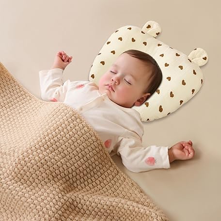 Thông tin sản phẩm Baby Pillow Plagiocephaly Cotton, Newborn Pillow, Baby Pillow for Head, Breathable, Helps Prevent and Treat Flat Head Syndrome, Neck Support for Prams (Beige1, 30 x 26 cm)