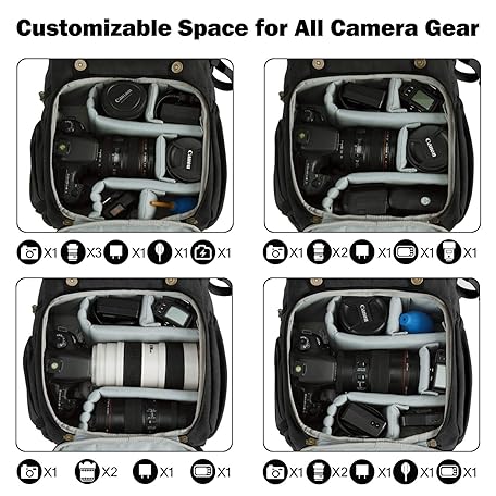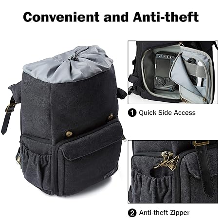 Thông tin sản phẩm bagsmart Camera Backpack DSLR Camera Backpack Canvas Anti-Theft Water Resistant with Rain Cover for 15 Inch Laptop, SLR Camera, Lenses, Accessories, black, Rucksack