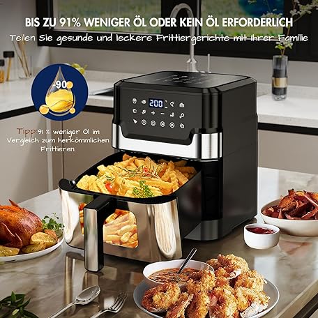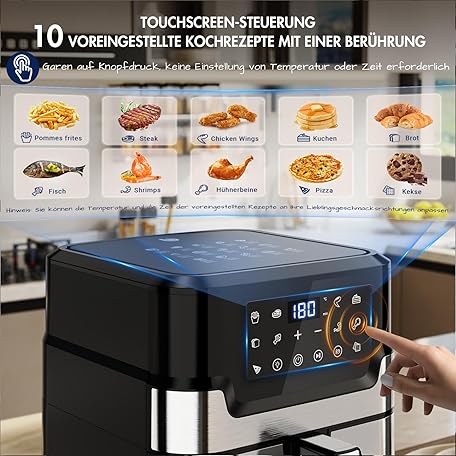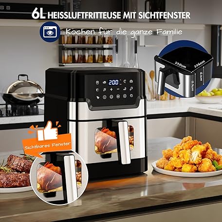 Thông tin sản phẩm BALITTA XXL Hot Air Fryer, 6L Airfryer Hot Air Fryer with Viewing Window, Family Size Hot Air Fryer without Oil, Air Fryers with Digital LED Touch Screen, 10 Programmes, Non-Stick Basket