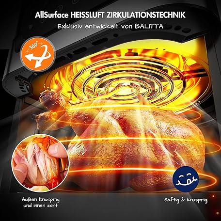 Sản phẩm BALITTA XXL Hot Air Fryer, 6L Airfryer Hot Air Fryer with Viewing Window, Family Size Hot Air Fryer without Oil, Air Fryers with Digital LED Touch Screen, 10 Programmes, Non-Stick Basket đang được bán với giá ưu đãi là $83.8973 tại nước Đức.