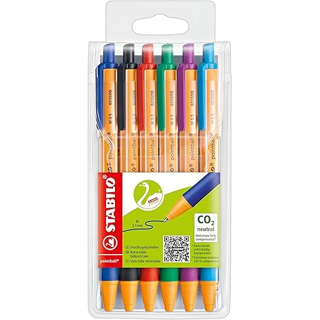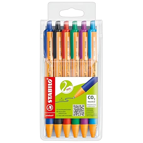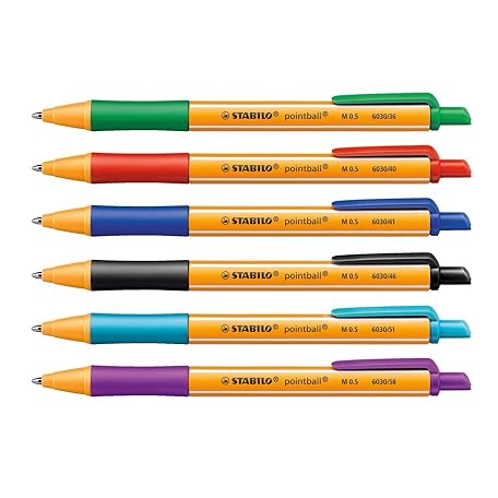 Ballpoint Pen - STABILO pointball - Pack of 6 - Red, Blue, Black, Green, Turquoise, Lilac