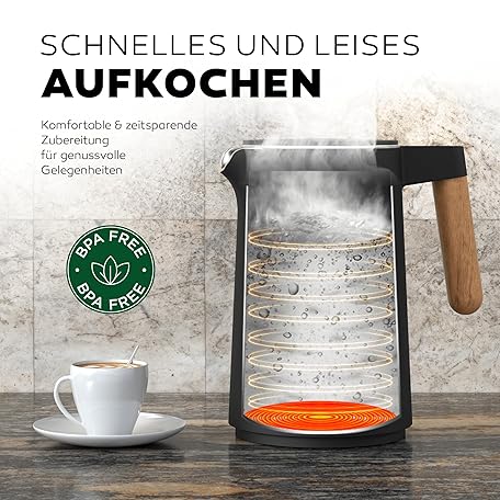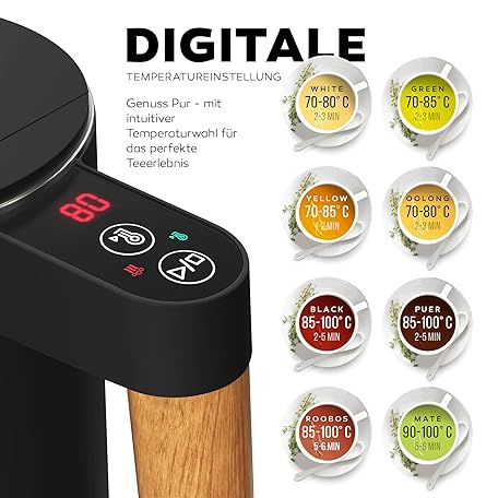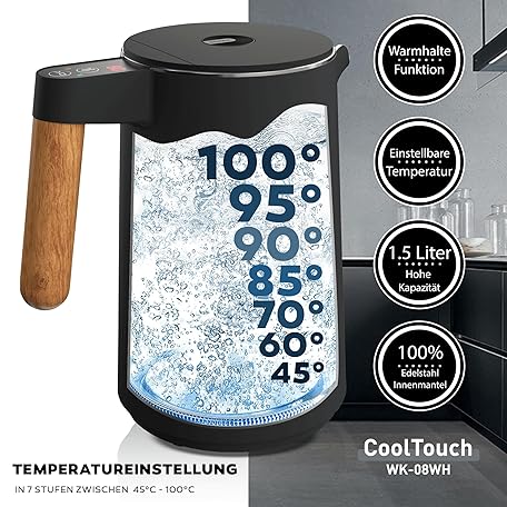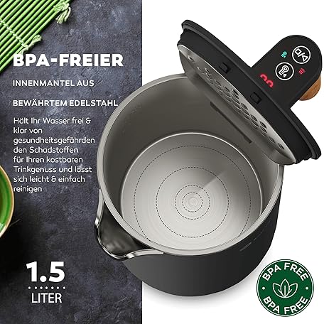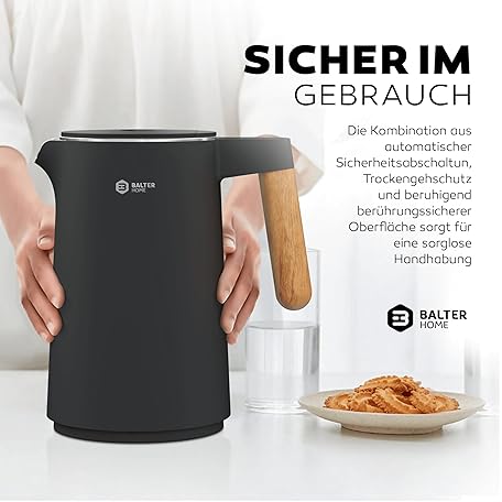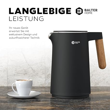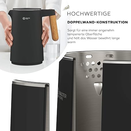 Thông tin sản phẩm BALTER Stainless Steel Kettle with Temperature Setting, 45 °C - 100 °C, Double Wall, BPA-Free, Quiet & Wireless, Warming Function, Tea Maker with Temperature Display, 1.5 L, 2200 W, Black