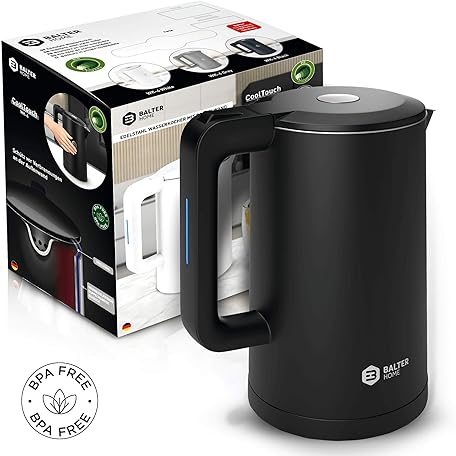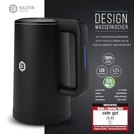 Thông tin sản phẩm Balter WK-4 Stainless Steel Kettle, 1.7 Litres, Electric Kettle, Double Wall Design, BPA-Free, LED, Tea Maker Compact, Quiet (Black)