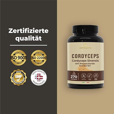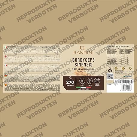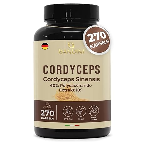 Thông tin sản phẩm Bandini® Cordyceps Capsules High Dose | 270 Pieces (650 mg) - 1950 mg per Day (10:1 CS4 Vital Mushroom Extract) + 40% Bioactive Polysaccharides - 3 Months Supply | Vegan, GMO-free Cordyceps Sinensis