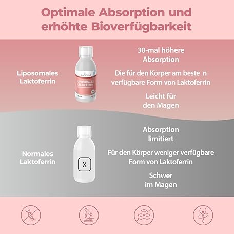 Sản phẩm Bandini® Lactoferrin liposomal | 200 mg liposomal liquid lactoferrin per dose (10 ml) | for iron absorption and immune system | colostrum component | high dose, without additives, laboratory tested | đang được bán với giá ưu đãi là $31.5555 tại nước Đức.