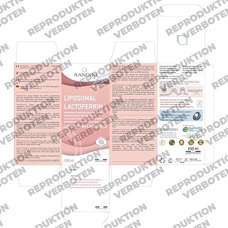 Thông tin sản phẩm Bandini® Lactoferrin liposomal | 200 mg liposomal liquid lactoferrin per dose (10 ml) | for iron absorption and immune system | colostrum component | high dose, without additives, laboratory tested |