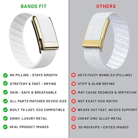 • Bands Fit Whoop 5.0 und MG kompatibles SuperKnit Luxe Ersatzarmband, nicht für 4.0, luxuriös, Edelmetall, ultraweich, hohe Leistung, Premium-Qualität, bequem, atmungsaktiv und langlebig (Weiß und Gold