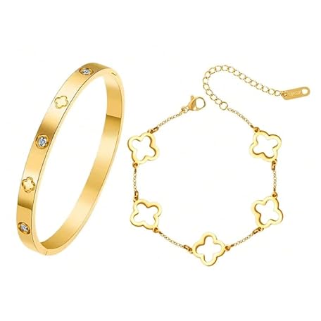 Thông tin sản phẩm Bangle with stones, clover bracelet, jewellery set, women's bracelet with clover, fashion bracelet, gift idea for women, filigree bracelet, special occasions, accessories, clover design