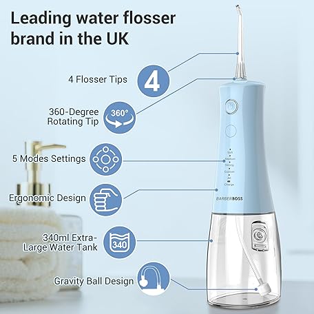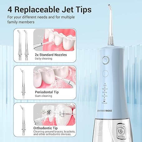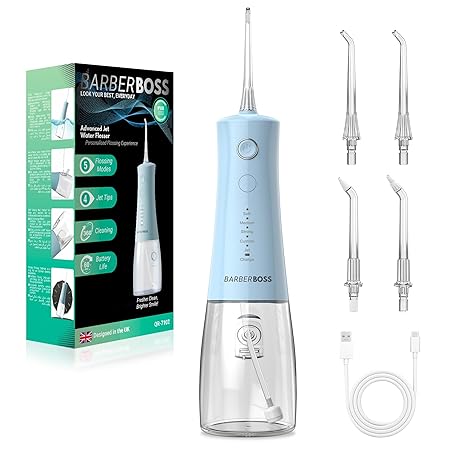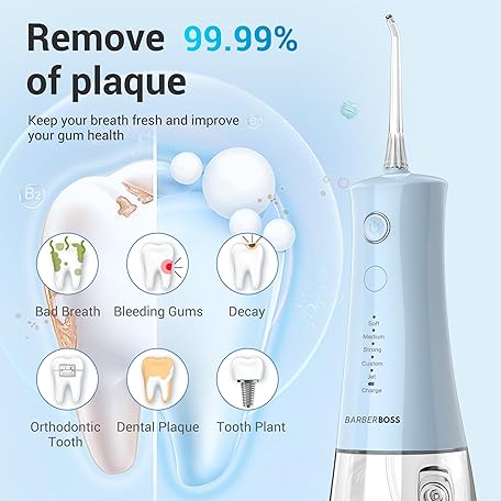 Thông tin sản phẩm BarberBoss Wireless Oral Irrigator, Electric Dental Floss with 5 Pressure Modes, IPX8 Waterproof, Portable Oral Irrigator for Gum Care, Teeth Cleaning Kit, QR-7102 (Pastel Blue)