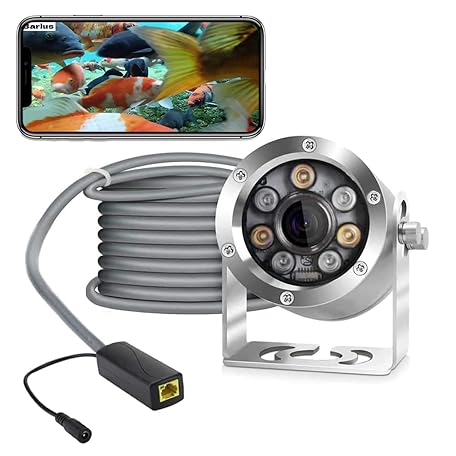 Barlus Unterwasserkamera POE 5MP CMOS Objektiv 100° Weitwinkel Meer Edelstahl mit Fülllicht IP68 Wasserdicht Kamera für 24/7 Koiteich mit 9,8 m Kabel